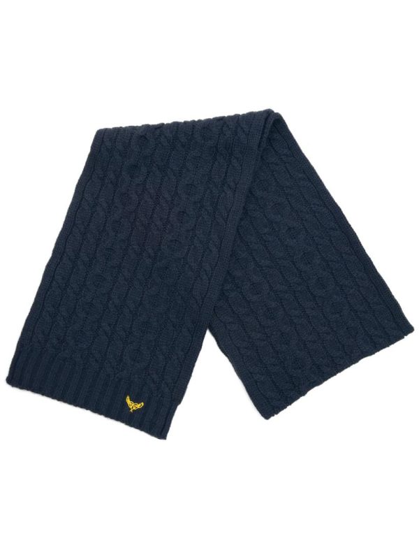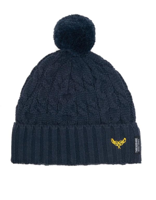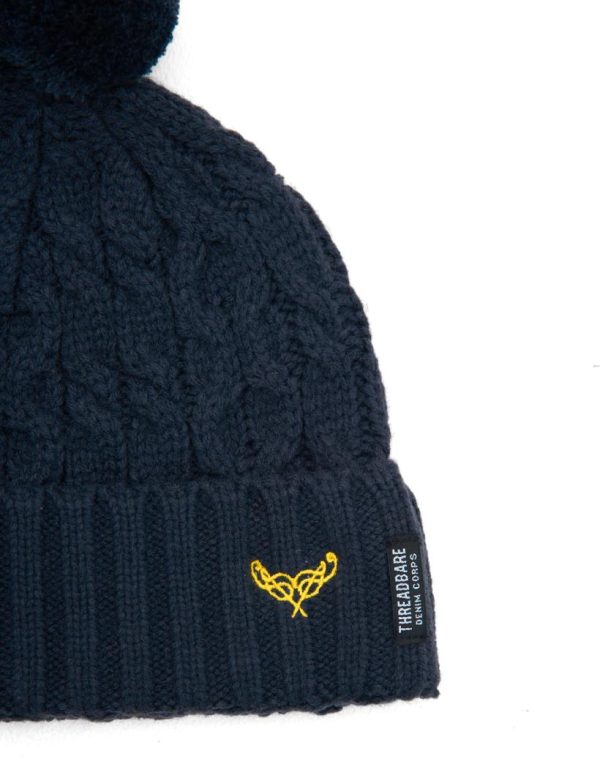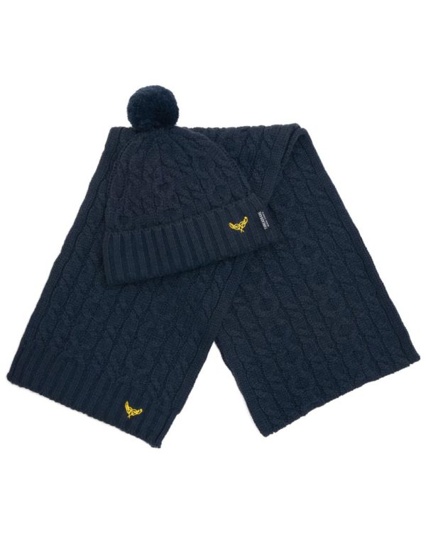 Keep warm when the temperature drops with this knitted hat and scarf set. Perfect for accessorising your outfit and giving as a gift. Features stretch for comfort, cable and ribbed detail, bobble to hat, and contrast colour branding embroidery.