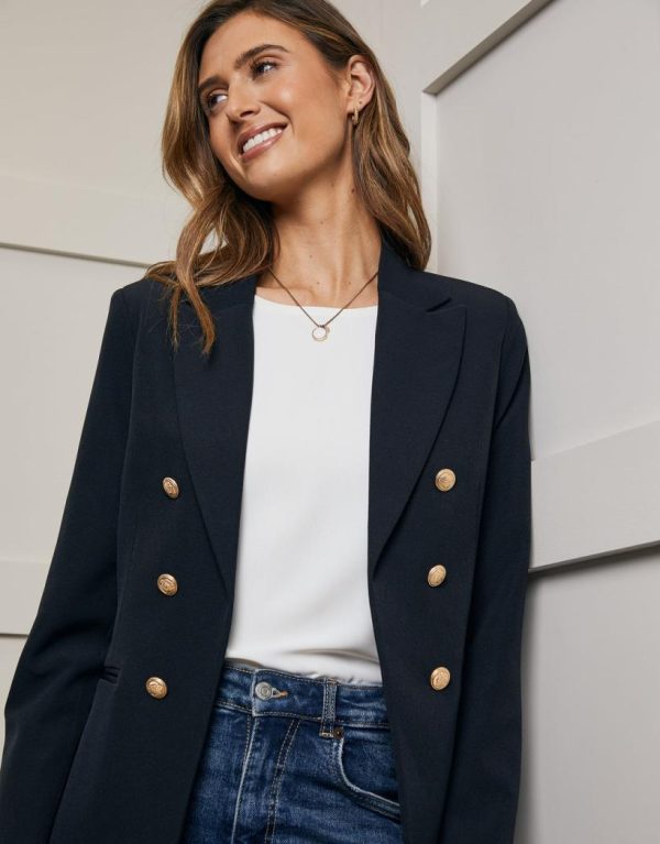Get the tailored look this season with this timeless classic blazer from Threadbare. In a sumptuous midnight black, this tailored blazer has a revere collar with a longline lapel, triple military style non-functional decorative buttons, and two hand pockets. A staple, wearable style of blazer to have on hand to level up any outfit. Pair with jeans and a white tee for simple chic, or style over a slip dress with a heel for date night glam.