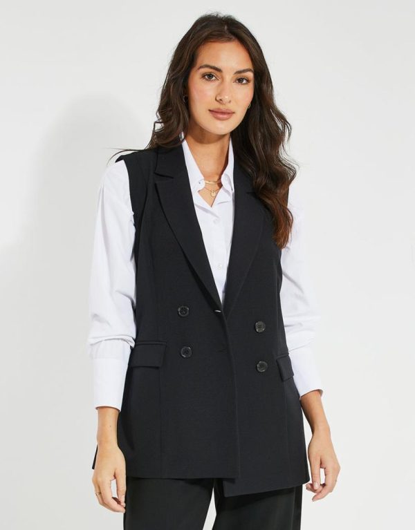 Level up your look with our Threadbare sleeveless tailored longline waistcoat, a new season take on tailoring. With a revere collar, double breasted button fastening and two pockets, this sleeveless jacket has a blazer feel without the hassle. Style up with a long sleeve bodysuit and jewellery, or make it more daytime-like by layering over a knit with jeans.