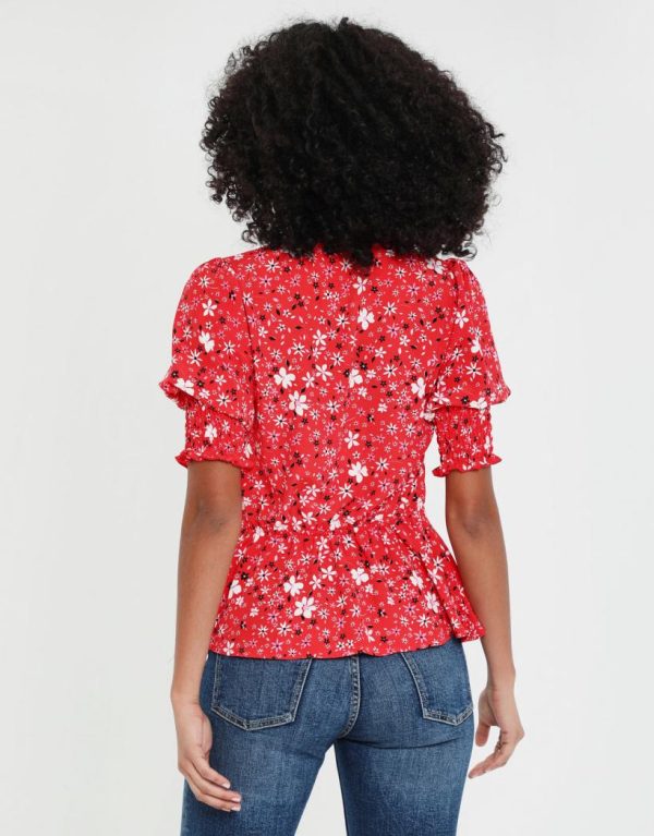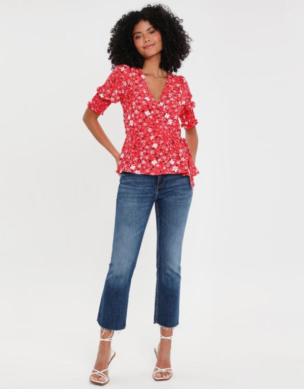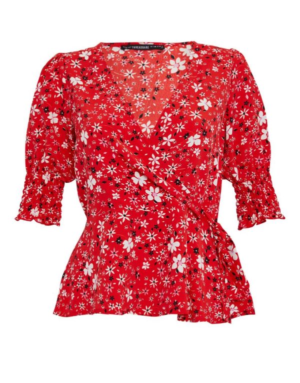Soon to be your favourite piece, this Threadbare ditsy floral print wrap blouse is a gorgeous addition to your spring summer wardrobe. With a tie detail to the front that wraps and ties to the side, this top has a flattering V neck shape, and a seamline to define your waist. The short sleeves are subtly gathered at the top for feminine flow, and they’re finished with elasticated ruched cuffs for elevated detailing. The hem panel has fullness to compliment your figure. In a stunning red shade with a white ditsy floral print. Pair it perfectly with denim jeans or leather look trousers for everyday wear, or wear in the summer months with a pair of staple denim shorts and sandals for an effortless glam look. For workwear, team with slim fit ponte trousers and a tailored blazer.