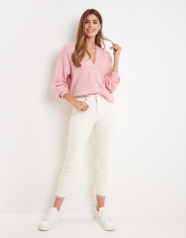 Inject your wardrobe with Parisian charm with our Threadbare cardigan, a super cute knit to give your wardrobe a refresh. In a fine rib knit that’s soft and fuzzy to the touch, you’ll look as cosy as you’ll feel. Cut in a relaxed fit, this knit cardigan in cheerful candy pink has a flattering feminine V-neck and slightly oversized sleeves with large ribbed cuffs add sought-after shape without the bulk. Jewelled buttons add opulence and a touch of glam to a basic piece. Style up with light wash denim for a casual chic look. The perfect cardi for brunch with the girls or nipping for that morning coffee in the city. Wear as a standalone piece or layer over a turtle-neck tee. Knitwear game strong.