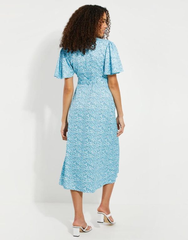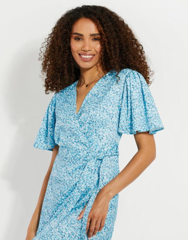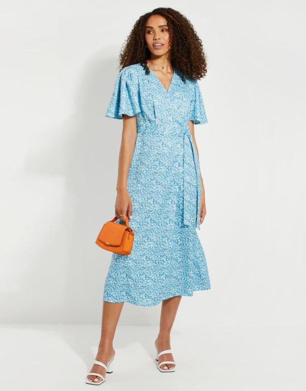 Elevate your spring summer style with our Threadbare satin floral printed wrap dress. In a gorgeous midi length, this satin dress is in a blue and yellow floral print and is cut in a regular fit to flatter your shape. Tie the waist belt as desired, and the floaty sleeves and wrap style make it the perfect feminine dress for the summer months and any other occasion throughout the year. Add simple footwear for daytime chic, but glam it up with a heel and jewellery for hot summer nights. A perfect wedding guest dress when paired with tonal colour accessories, it’s also a gorgeous dress to wear for Valentine’s Day, Mother’s Day and any other occasions.