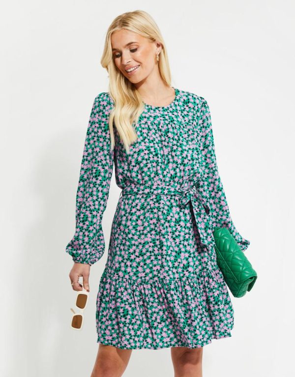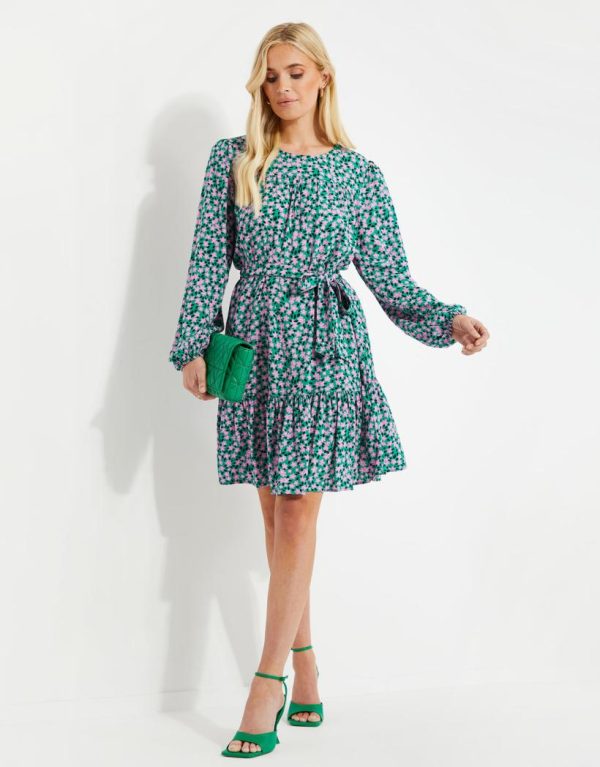 Threadbare Dresses | Women Green Floral Print Smock Dress