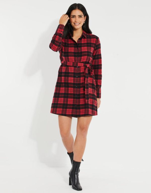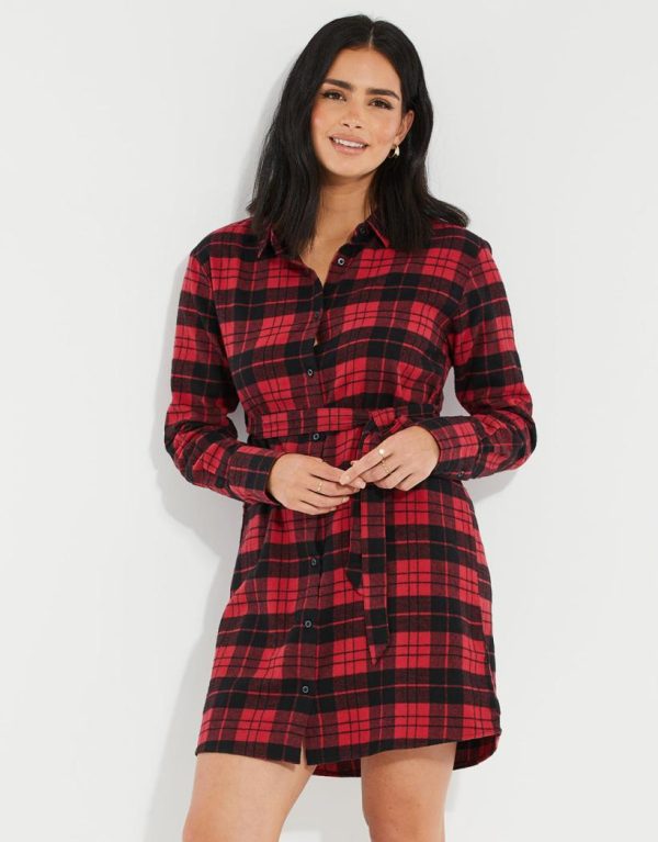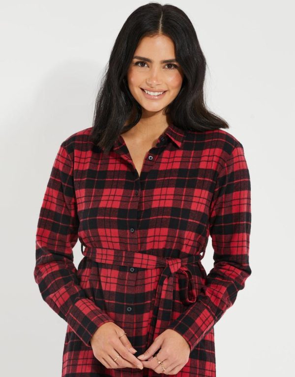 Match with all the family in our cotton check shirt dress, perfect for family moments. This cute check dress is in a red and black print, and has a shirt style collar, puff sleeves and a self-tie waist belt. Finished with a frill hem for ultimate cuteness.