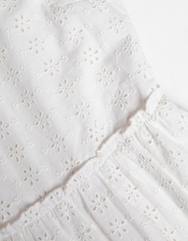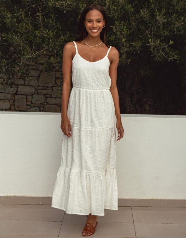 Feel elegant this spring and summer in this floral broderie anglaise tiered strappy midi dress. Made from lightweight cotton and with a polyester lining front and back, this exquisite cami strap smock dress in a midi length has a delicate and feminine V neck that’s edge stitched for subtly detailing. With smock tiering, this midi dress has a seamline to the waist and cut seams to skirt that both have frills gathered into the seams for a glamourous take on a daywear dress. There’s also fullness in the tiered skirt which finished with a wide hem – subtly chic details for the perfect pretty flow. Create a feminine silhouette and enjoy a comfortable fit all season long. Team with a denim jacket and trainers for casual daytime looks, or swap for sandals in the summer. Turn it into an occasionwear piece (perfect for a wedding guest outfit!) by adding strappy heels and chic accessories.