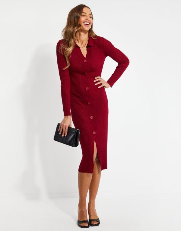 Comfy meets cool with our Threadbare ribbed mock cardigan style dress. In a figure-hugging bodycon fit, our knitted dress is the answer to your workwear meets date night dilemmas. With ribbed detail and mock button down except for one functional top button, the dress is finished with a collared neck. Style it for work with cute chunky boots and a checked shacket, or take it into the evening with cold jewellery and strappy heels. The perfect day-to-night dress that’s your new go-to.