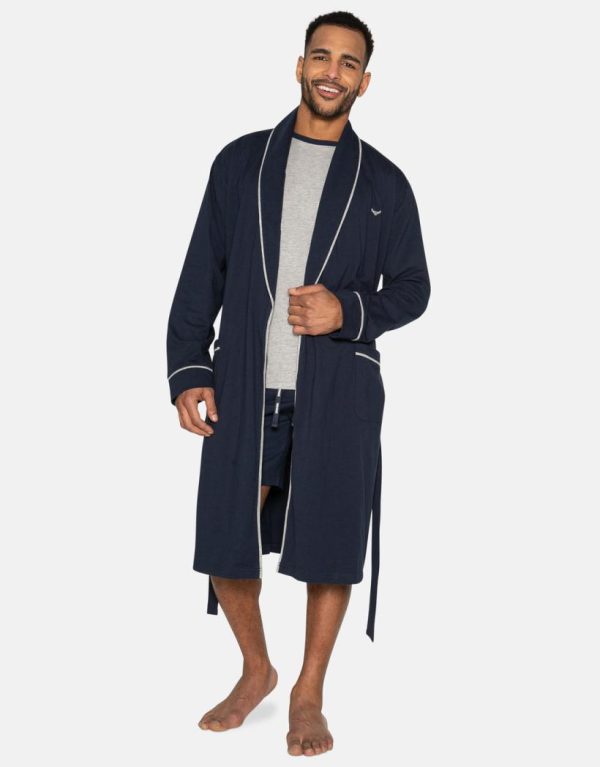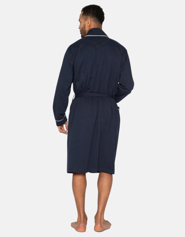 Your nighttime essential from Threadbare. Everyone needs a comfortable robe to wear before bed. Relax in this cotton and polyester mix dressing gown, with a soft revere collar with piping details. Finished with two piped pockets, self-tie waist belt, and our classic Threadbare embroidery on the chest. Wear over your favourite pair of pyjamas and chill out in comfort before bed.