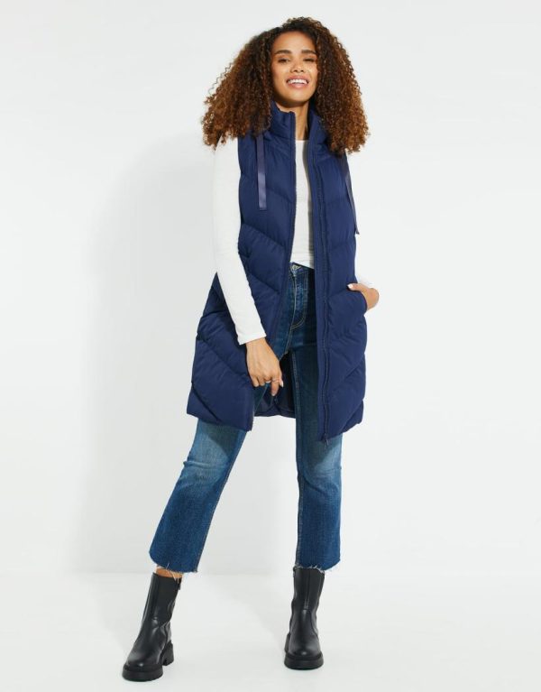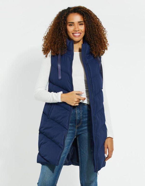 Threadbare Gilets | Women Navy Longline Padded Gilet