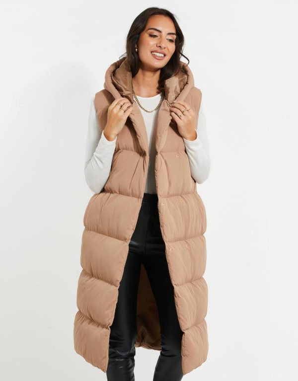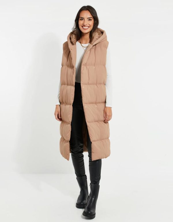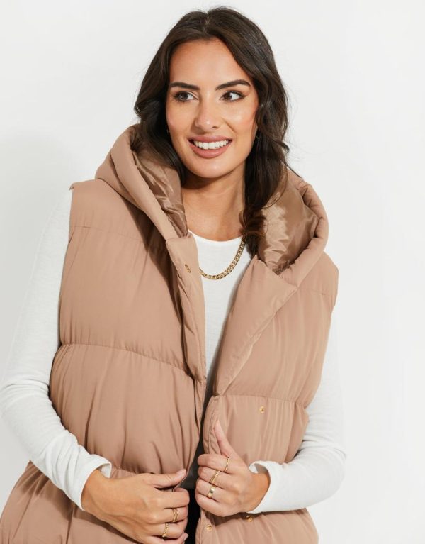 Threadbare Gilets | Women Stone Hooded Wrap Padded Gilet