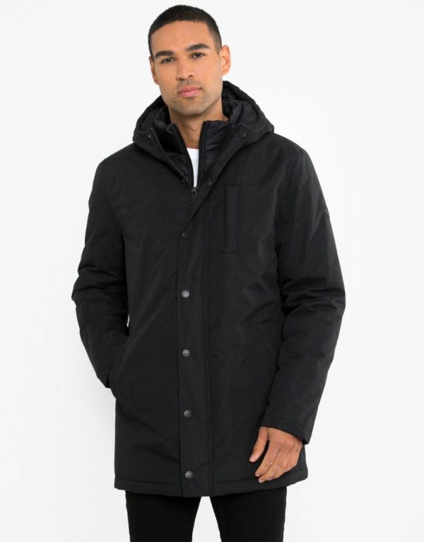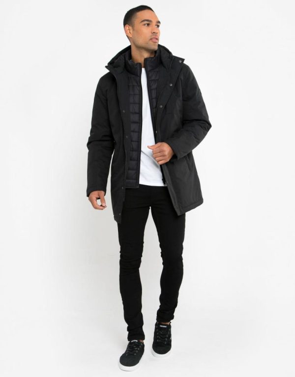 Kit yourself out with an outerwear layer that delivers on style. Welcome our Threadbare jacket, an essential coat for colder weather. With an mock padded inner layer that zips up and finished with a funnel neck, this coat is cut in a comfortable regular fit, and has ribbed cuffs, and full zip fastening and snap fasteners. Finished with our signature Threadbare badge on the left arm for coveted brand appeal and a chest pocket. The perfect transitional tailored feel jacket see off the weather in style.