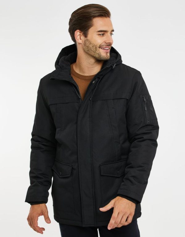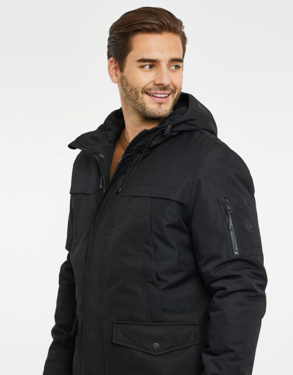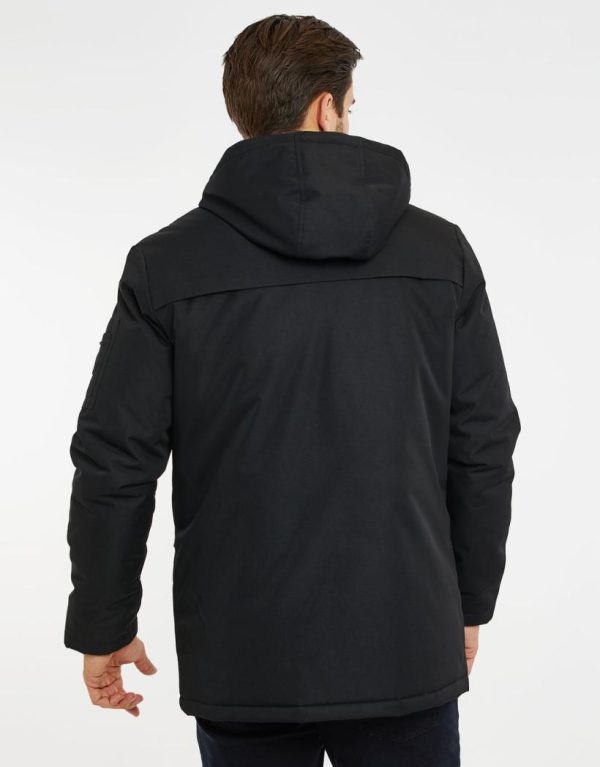 After outerwear with pockets that doesn’t compromise on style? Meet our Threadbare black zip up mac with a borg lined hood. With a faux borg lined hood and black bungee cord details, this hooded coat has a full zip fastening and seams for a tailored feel. Make use of six pockets: two snap fastening front pockets, two zip fastening chest pockets, one zip fastening arm pocket and one internal phoned-sized pocket. With funnel style neck, it has ribbed sleeve cuffs and lightweight internal quilted panelling for extra warmth. Style as you wish to keep you warm and dry throughout the cooler months.