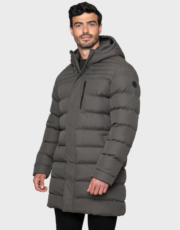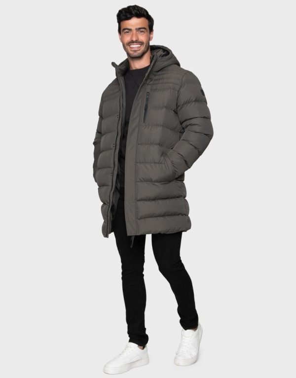 Upgrade your outerwear with our Threadbare longline puffer coat. In a longline style, this hooded puffer jacket has on-trend horiztonal seam quilts and a full zip fastening and concealed snap fasteners. Make use of two open angled entry front pockets, zip up chest pocket and inside phone-sized pocket – all perfect for story your essentials. Ribbed storm cuffs and a three-piece padded hood will keep you snug and protected. Finished with our Threadbare badge on the left arm for signature Threadbare style. A great padded coat to keep you stylish even on grey, drizzly days.