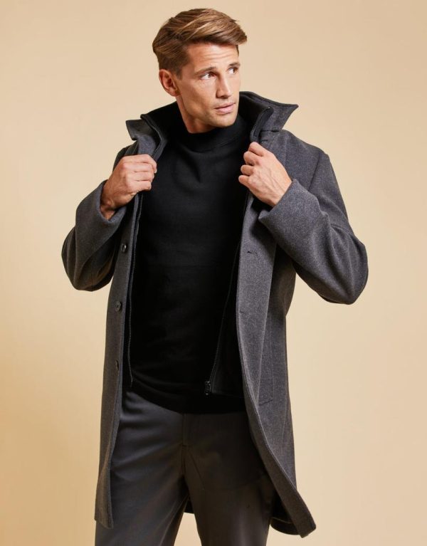 For a truly sophisticated look, our new range of menswear is here: Threadbare Luxe. Your winning formula in the shape of a jacket: style x function + practicality. With a funnel neck collar, this coat has a mock under layer finished with a ribbed funnel neck that zips up. This luxe, single-breasted, button fastening coat is fully lined for that finished feeling. Over a check shirt and dark blue jeans, this tailored coat is perfect for taking you through autumn and winter and dressing up an outfit without compromising on practicality.