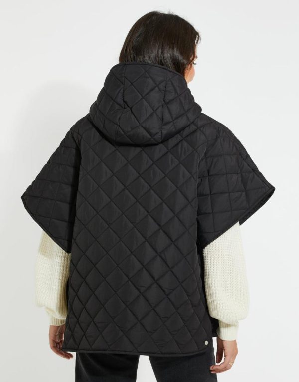 Style it up this season in our Threadbare quilted poncho. This quilted poncho is a new wave of outerwear to bring style to your transitional wardrobe. With a quilted hood and snap fastening neck placket, this poncho has small angled welt pockets on the front and snap fasteners on each side which can be fastened or open as desired. Finished with a duvet hem for that off-duty look. Layer over your favourite outfit to show your style. The perfect piece for family walks in the park or nipping to the shops in the cold weather.
