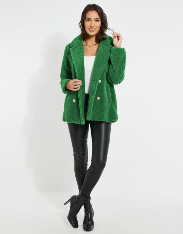 Threadbare Jackets & Coats | Women Green Double Breasted Faux Borg Coat