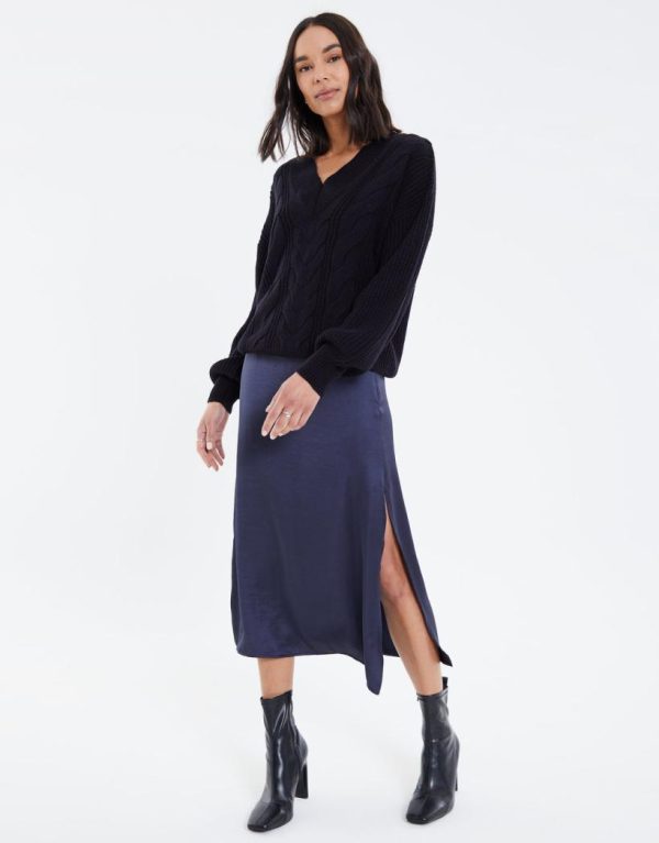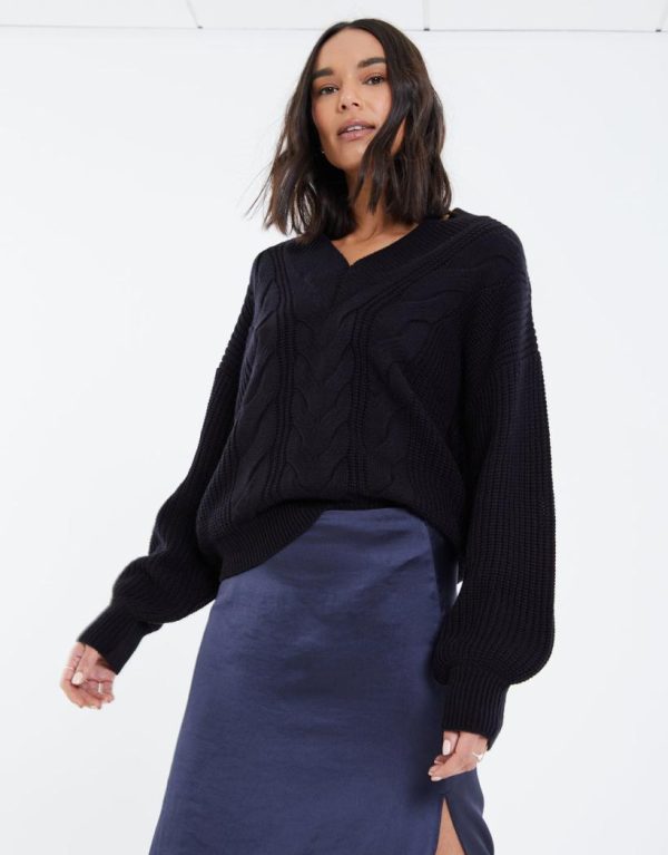 Take your outfit game to the next level with our Threadbare slouchy cable knit jumper. This knit has a cable knit design to the front and a ribbed V neck, along with a relaxed drop shoulder and ribbed cuffs creating a slouchy-feel balloon sleeve. Perfect to pair with jeans on the weekend, simply add an oversized biker and a heel for a glam girls’ brunch look.
