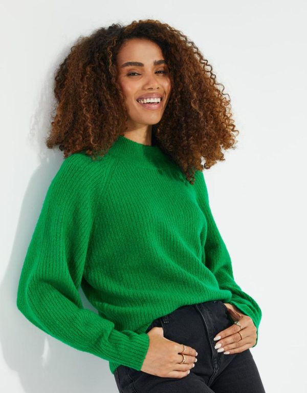 Take your outfit game to the next level with our Threadbare high neck slouchy knitted jumper. This knit has a ribbed design, along with a grown-on high neck, and relaxed raglan sleeves that are finished with large ribbed cuffs for a balloon-style sleeve. Finished with a ribbed hem to keep the easy-to-wear feel.Perfect to pair with jeans on the weekend, simply add an oversized faux leather biker jacket and a heel for a glam girls’ brunch look.