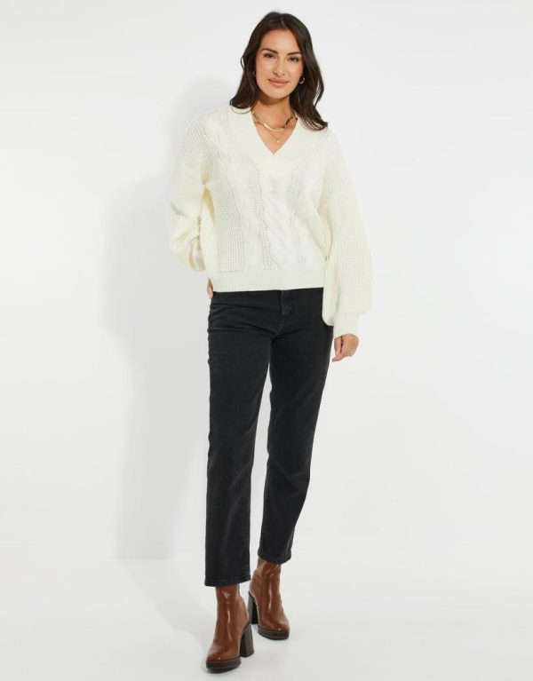 Take your outfit game to the next level with our Threadbare slouchy cable knit jumper. This knit has a cable knit design to the front and a ribbed V neck, along with a relaxed drop shoulder and ribbed cuffs creating a slouchy-feel balloon sleeve. Perfect to pair with jeans on the weekend, simply add an oversized biker and a heel for a glam girls’ brunch look.