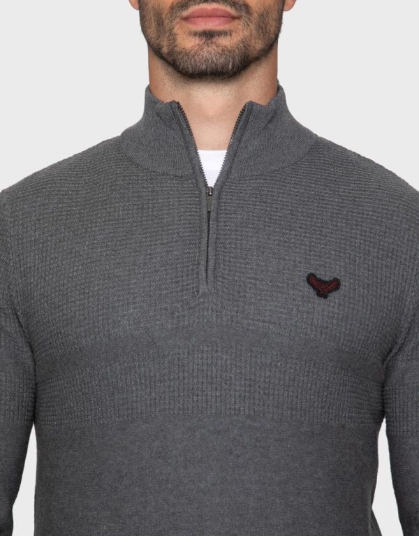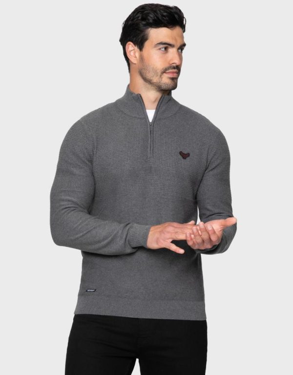 Threadbare Knitwear | Men Mid Grey Marl Quarter Zip Jumper