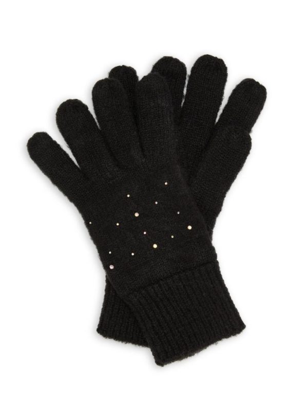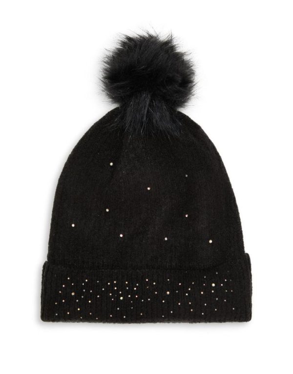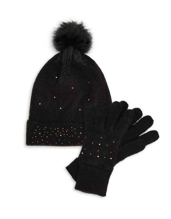 Finish off your winter look with this gorgeous two piece hat and gloves set. Adorned with diamante crystals, this black hat has a faux fur pom and matching cream knitted gloves. Perfect teamed with your winter outfit, and will also make a lovely Christmas gift for friends and family.