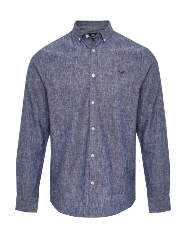 Threadbare Linen | Men Denim Blue Long Sleeve Linen Blend Shirt