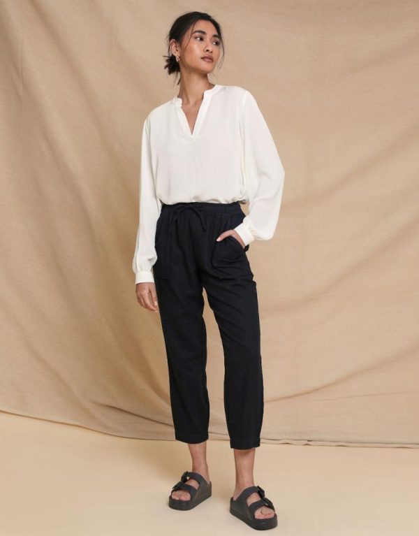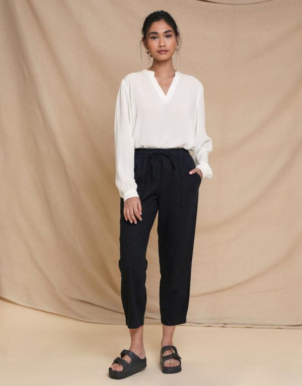 Threadbare Linen | Women Black Linen Blend Drawstring Trousers
