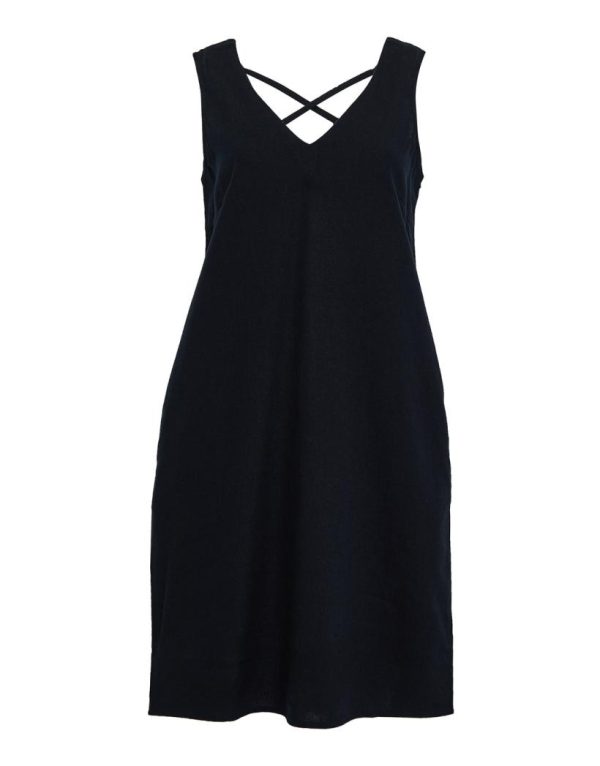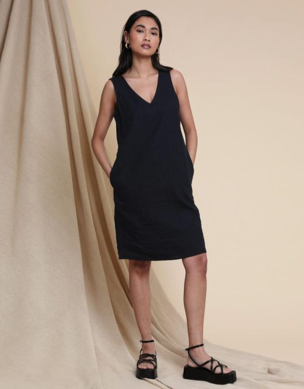 Daytime chic gives a nod to classic shapes with this Threadbare sleeveless shift dress. Made from a linen and viscose blend, this crossback style is sleeveless with a V neck, and has bust darts for subtle yet feminine shaping. Team with sandals and a floppy hat in the sun, and for weekend errands, pair with a denim jacket and trainers for effortless styling.