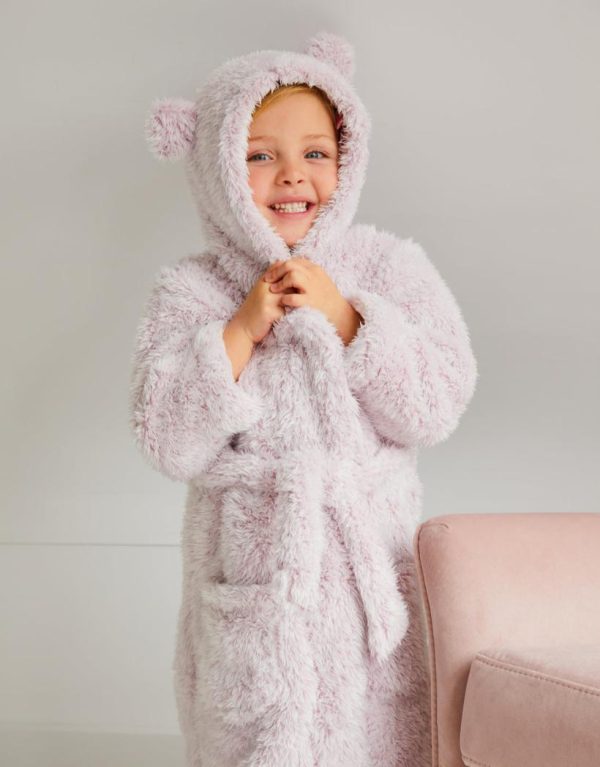 Bring comfort to their nights by cosying up before bed in our Threadgirls fluffy dressing gown. As seen on Elsie Thomas, as part of our Thomas Family Favourites edit. With an oversized hood with cute bear ears, this longline robe has an adjustable tie waist belt and two pockets to keep your hands snug. Be cute and comfy by putting this on over your usual nightwear to bring warmth on cooler mornings.Match with Mummy in our Threadbare Women’s version.
