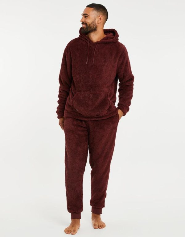 Threadbare Loungewear | Men Burgundy Borg Lounge Pants
