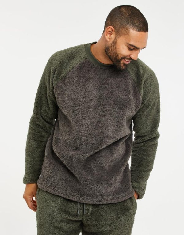 Time to put your feet up? This soft touch in super comfy faux borg pyjama set will be the one for you. This long sleeve top with crew elasticated neck, and contrast tonal raglan sleeves, and the long pants have an elasticated waistband and drawcords, front pockets, and ribbed ankle cuffs. A reliable loungewear item for everyone’s wardrobe to keep you warm and cosy.