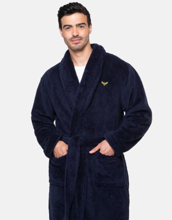 Threadbare Loungewear | Men Navy Teddy Dressing Gown