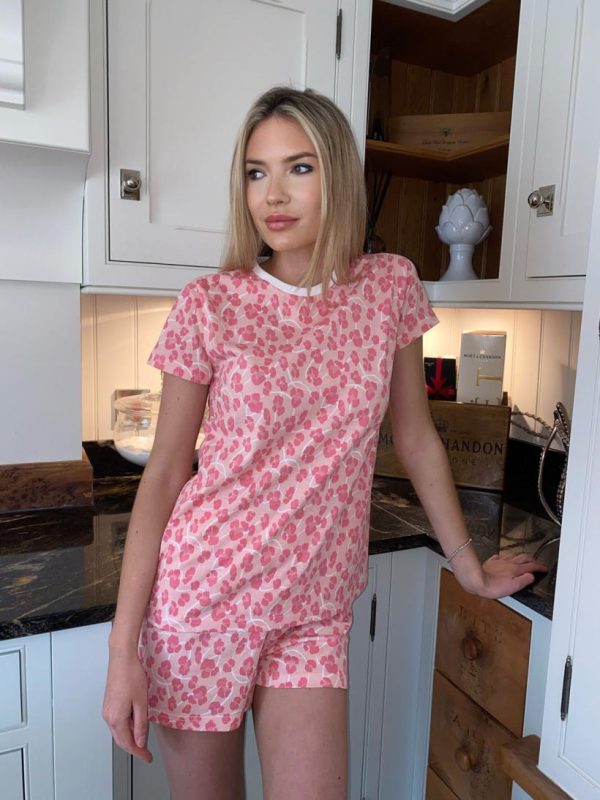 Feel cute while you relax in this loungewear set. Features short sleeve top with animal print, and pajama short with matching print, with elasticated waist. Other colour available.