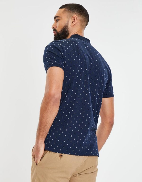 Complete your capsule wardrobe with our navy cotton jersey polo shirt. Cut in a regular fit, this polo shirt has an all-over geometric print, ribbed collar, and concealed zip. The sleeves are finished with ribbed cuffs, and the polo is complete with a woven label on the hem and side vents for subtle styling. Team with jeans, chinos or shorts for a laidback luxe look that’s perfect for smart casual outings and everyday wear.