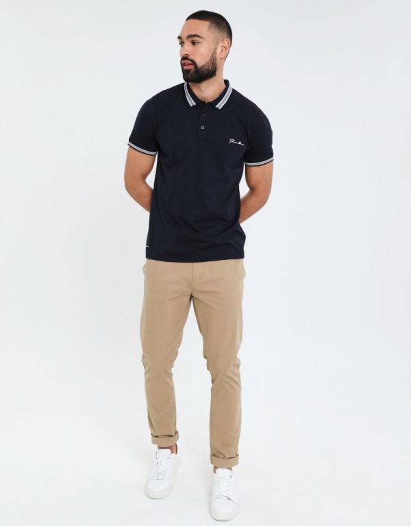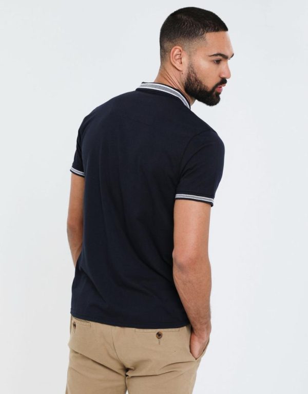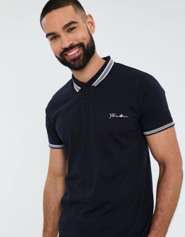 Look sharp this season in this classic logo pique polo shirt. Cut in a regular fit, this navy blue polo shirt has a hidden placket with branded buttons, ribbed collar with jacquard detail, and short sleeves with ribbed sleeve cuffs with matching jacquard detail. Finished with our scripted Threadbare embroidery for signature styling, and our classic woven Threadbare label above the hem. Perfect for date night, smart casual events and casual Fridays at work.
