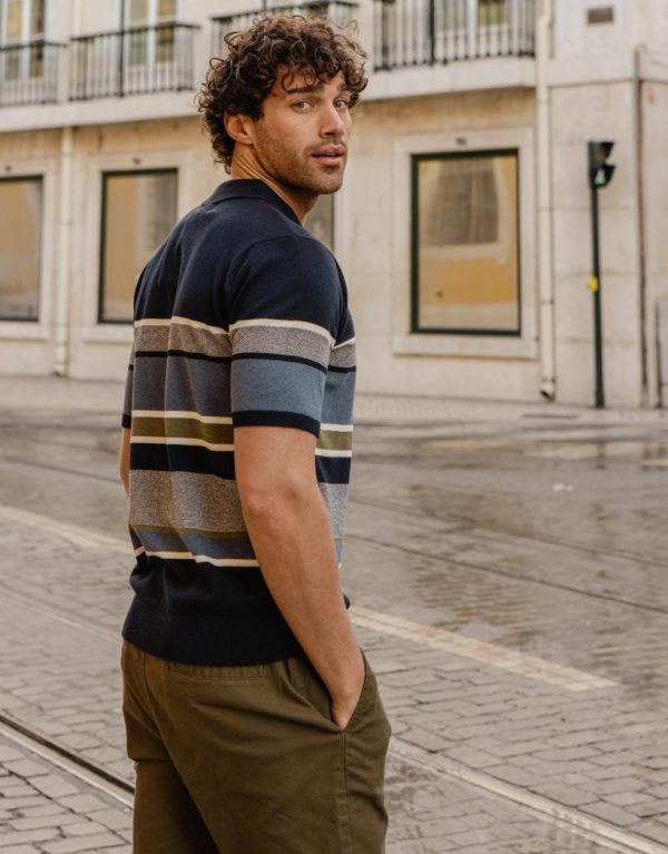 Bring a fresh look to your spring-summer knitwear with our casual transitional piece: the striped quarter zip knitted polo. With a stylish quarter zip, this knitted polo in a navy, blue, green and ecru stripe is winner for family evenings out or your next holiday. Finished with ribbed cuffs and hem for that ease, it’s a contemporary style to keep you on-trend without the effort. Pair it with chinos or jeans and a shacket for understated day-to-day wear that also works perfect for date night, or team with casual shorts for summer style.