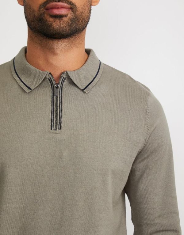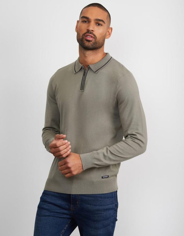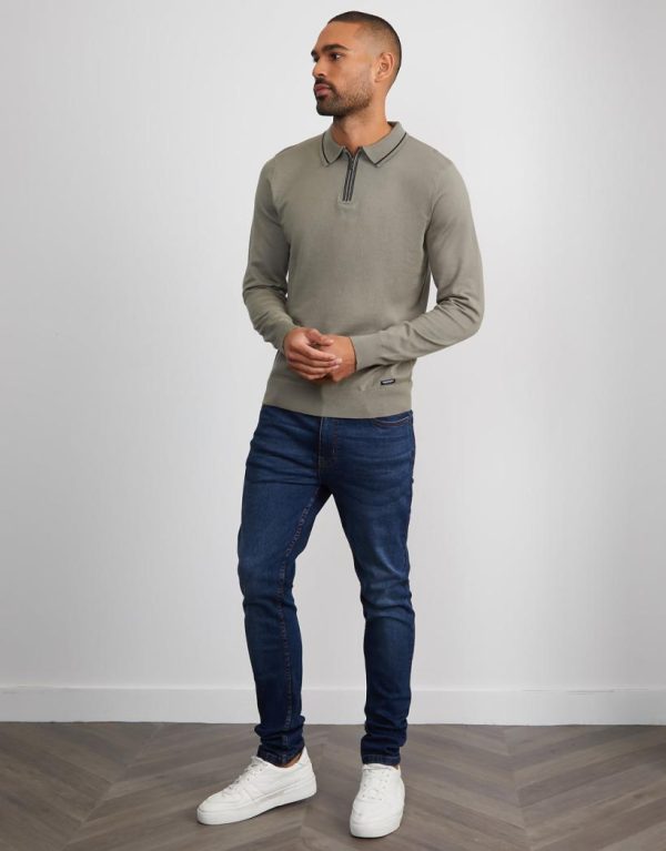 Freshen up your knitwear collection with our Threadbare polo neck jumper. In sage green with navy details, this jumper has a polo neck upleveled with a quarter zip making it an on-trend piece that you can wear now. Finished with a trim detail to the collar and zip in contrast navy. Team with jeans for a casual weekend look that’s easy and effortless. Simple smart casual sorted.