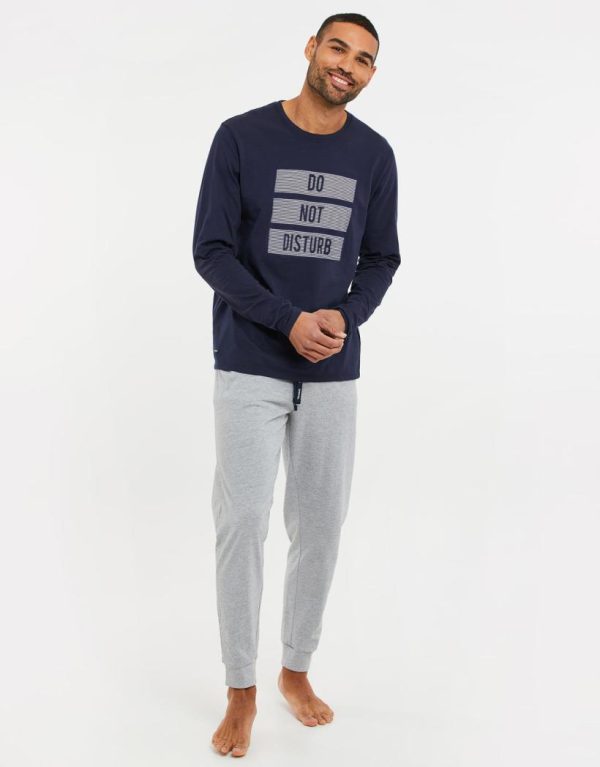 Threadbare Pyjamas | Men Navy & Grey Marl Long Pyjamas -Piece Set