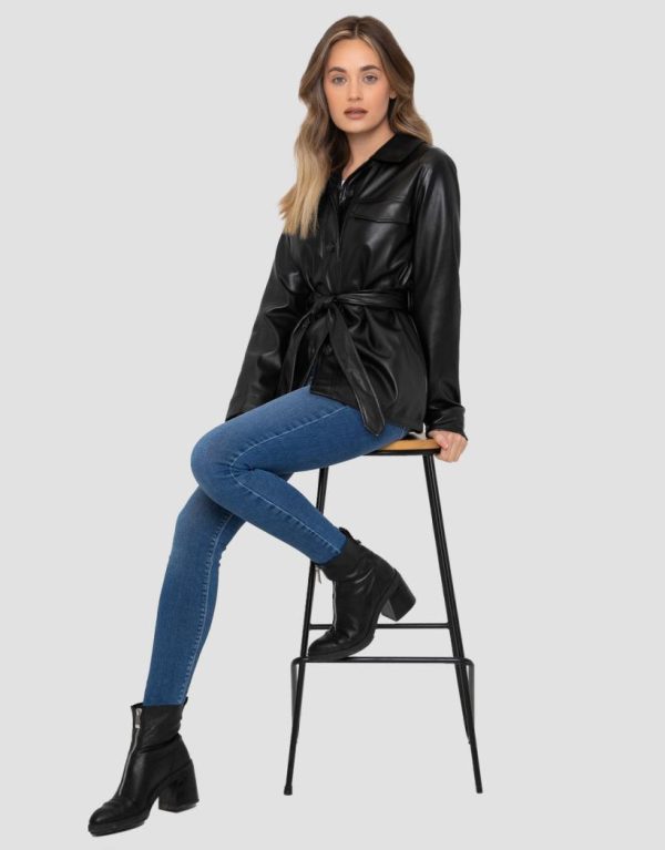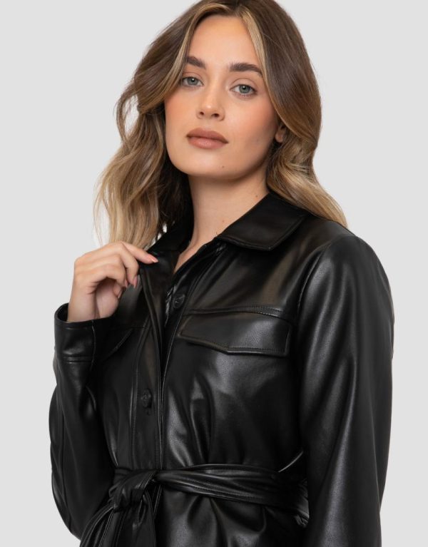 Refresh your wardrobe with this on trend PU belted lightweight shacket, perfect for dressing up or down all year round. Made from super soft PU. Features tie belt fastening, colour-matching buttons, collared neckline, long sleeves, and two twin chest pockets. Also available in burgundy.Style tip: Size up for an oversized fit.