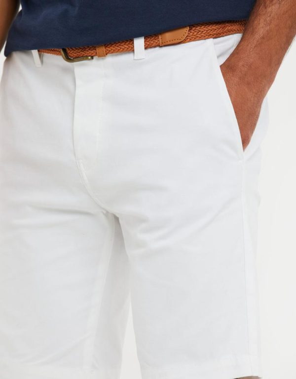 Take on the summer weather in these belted, button fly chino shorts. These five-pocket, button fly shorts have turn-up hems and come with a woven belt to give you the option to style how you wish. With two pockets and a coin pocket to the front, and two back welt pockets, there’s plenty of space to store your essentials. Made from 98% cotton and 2% elastane for a really comfortable feel and a slight stretch – great for moving about in the sunshine. Perfect for summer, team them with one of our short sleeve shirts for a smart casual look that’s perfect from beach to bar, or poolside wear with flip flops and a t-shirt for a more casual feel. Also great for barbecues with a casual tee.