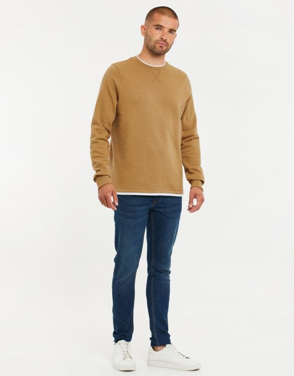 Threadbare Sweatshirts | Men Camel Mock T-Shirt Sweatshirt