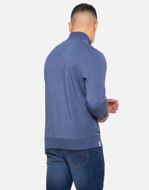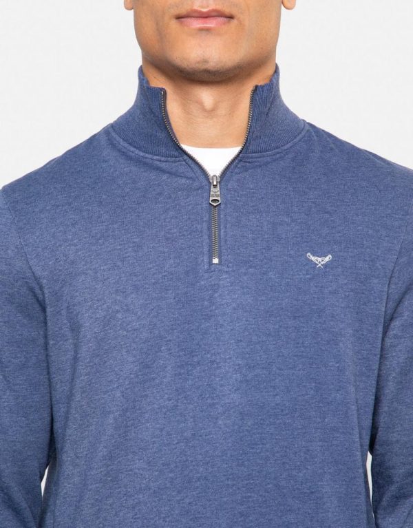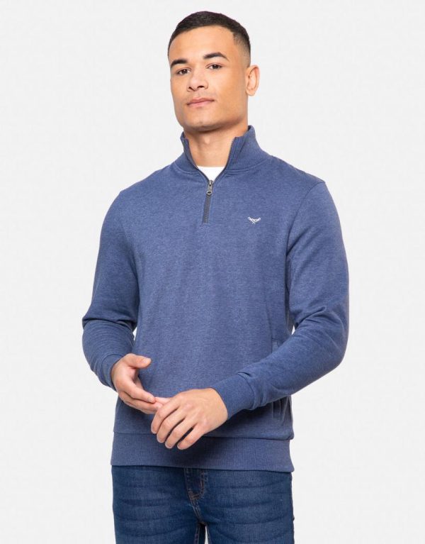 Threadbare Sweatshirts | Men Denim Blue Quarter Zip Knitted Sweatshirt