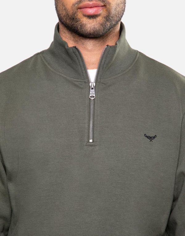 Threadbare Sweatshirts | Men Khaki Quarter Zip Knitted Sweatshirt