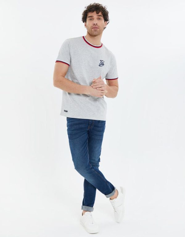 Threadbare T-Shirts | Men Grey Marl Mock Collar Logo T-Shirt