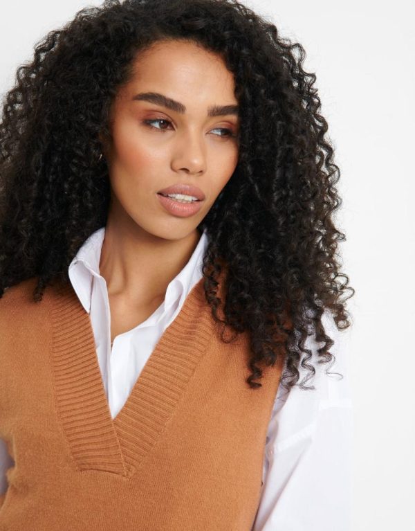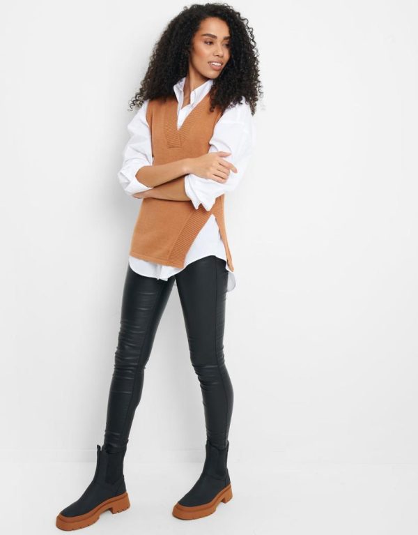 This cute asymmetric detail vest top is perfect for winter layering. Feature ribbed v neck, ribbed side split. Great styling piece and super comfy to wear.