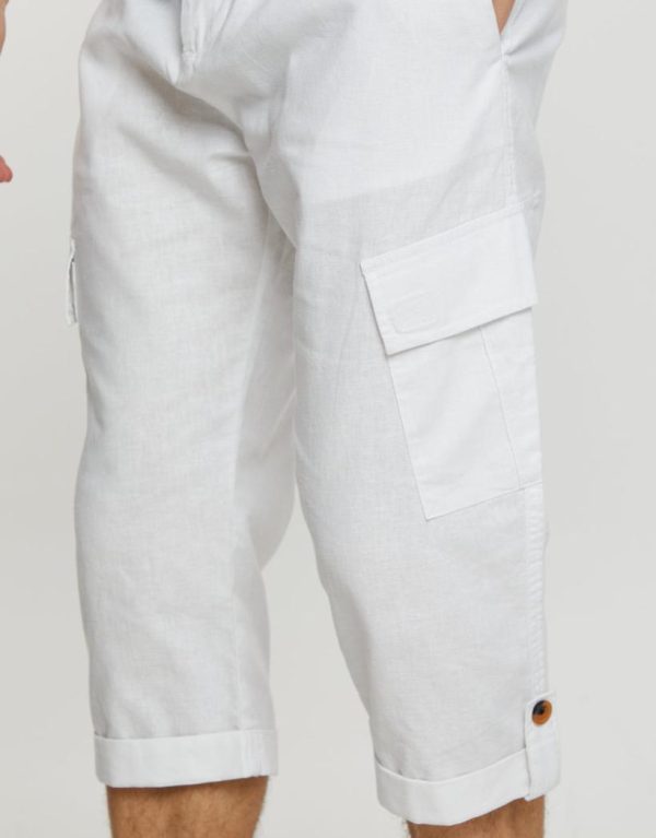 Refresh your seasonal wardrobe with these linen blend cargo style trousers from Threadbare, in a three-quarter length. These casual cargo trousers are the perfect blend of comfort and style, and with an elasticated drawstring waistband and belt loops, they hit the laidback luxe trend with ease. Cut in a regular fit and 3/4 length, they’re finished with a twin needle hem, and have a cargo pocket on each thigh – all elevating this everyday essential. Complete with two side pockets. The ideal piece to freshen up your spring-summer wardrobe. For laidback, casual style, wear with a basic tee and a long sleeve check shirt. Wear in the summer months with a casual shirt, like a Grandad collar style.